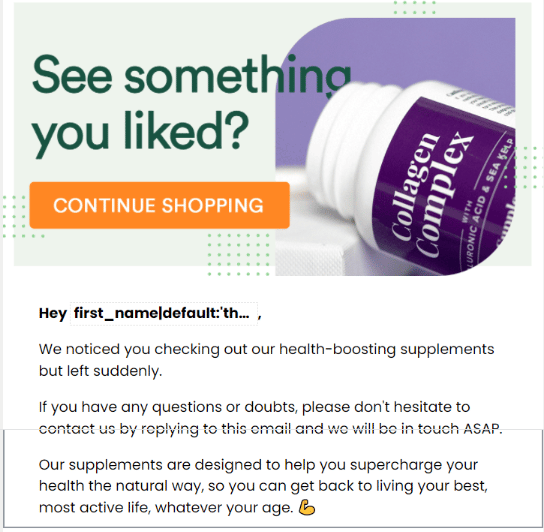 Additionally, to avoid sounding like a broken record, move to talking about bestselling items, social proof, brand story, USP.etc if they don’t purchase after email 3.